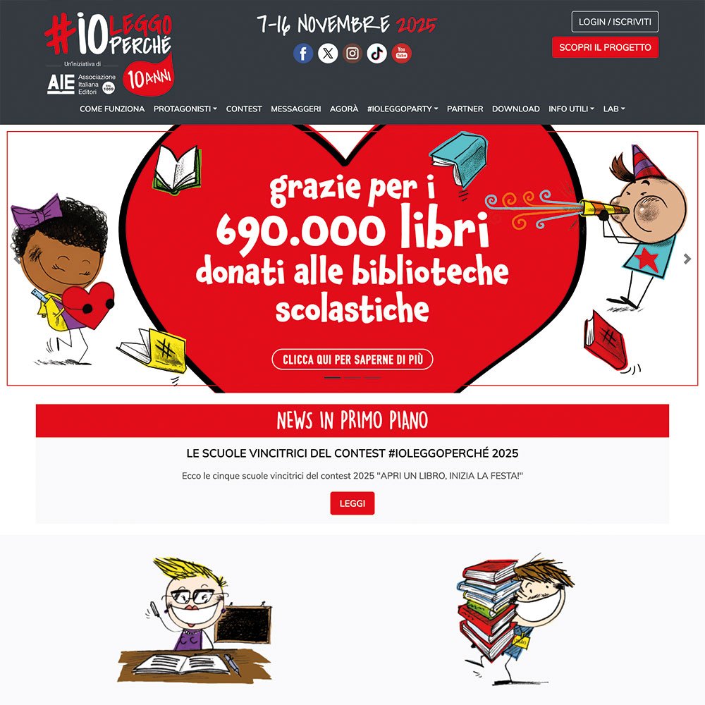Tutte le scuole e le librerie d'Italia sono invitate a iscriversi sul relativo website e a