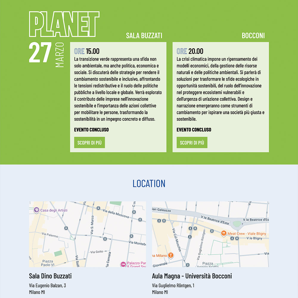 appoggio all'evento, con il programma e le bio dei ospiti, in doppia lingua IT/ENG. Erogazione in