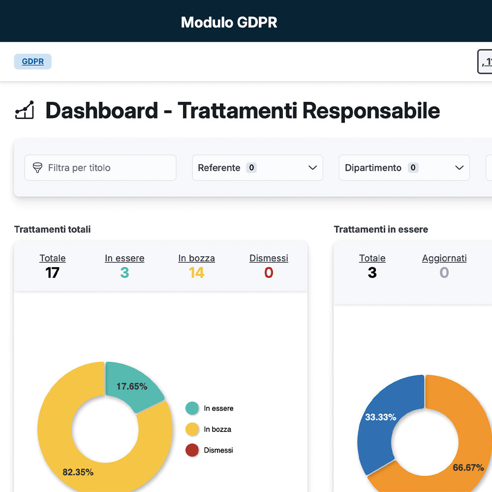 normativo, applicazione degli adempimenti, gestione dei fornitori. È su uno stack di sviluppo